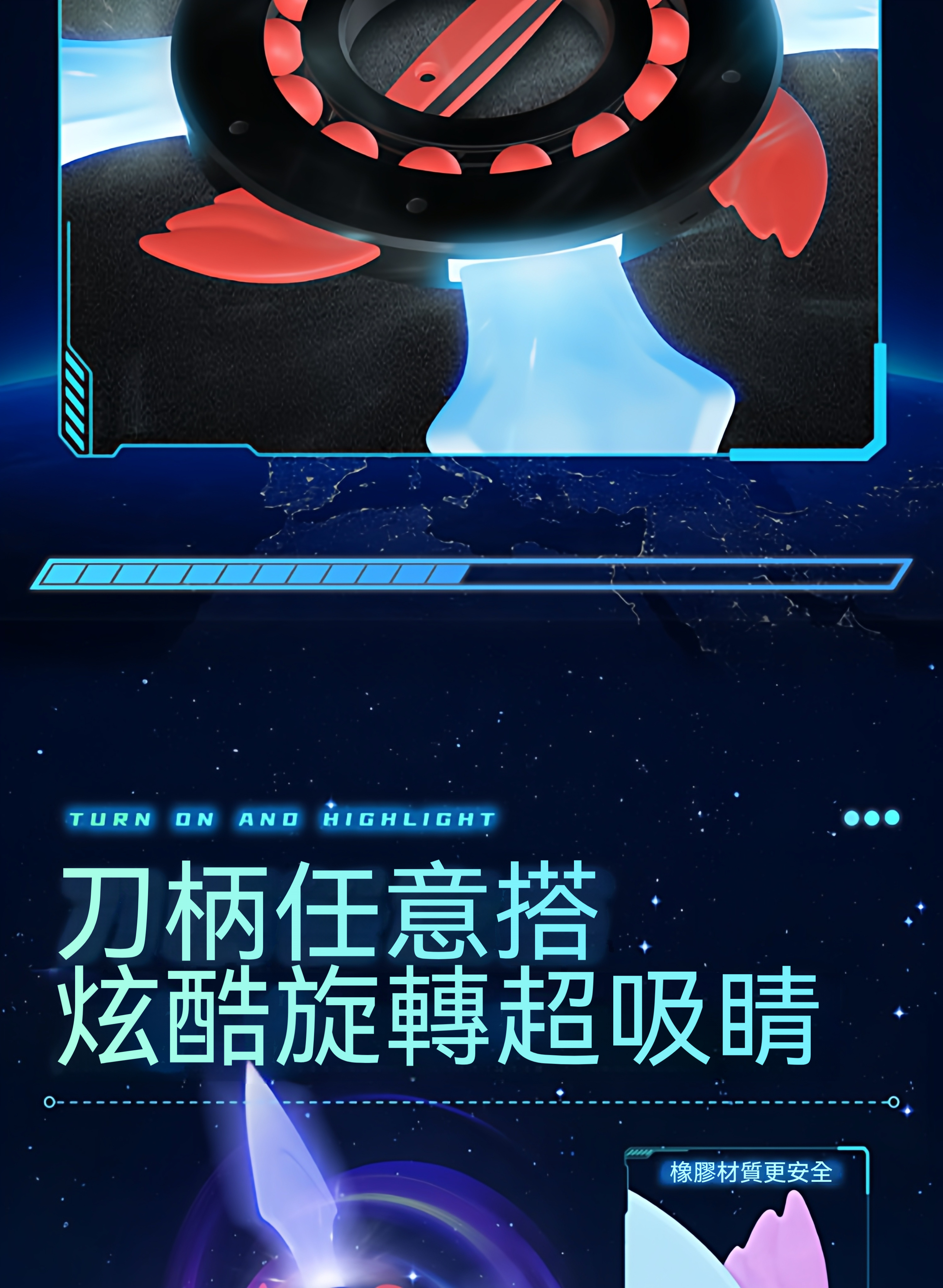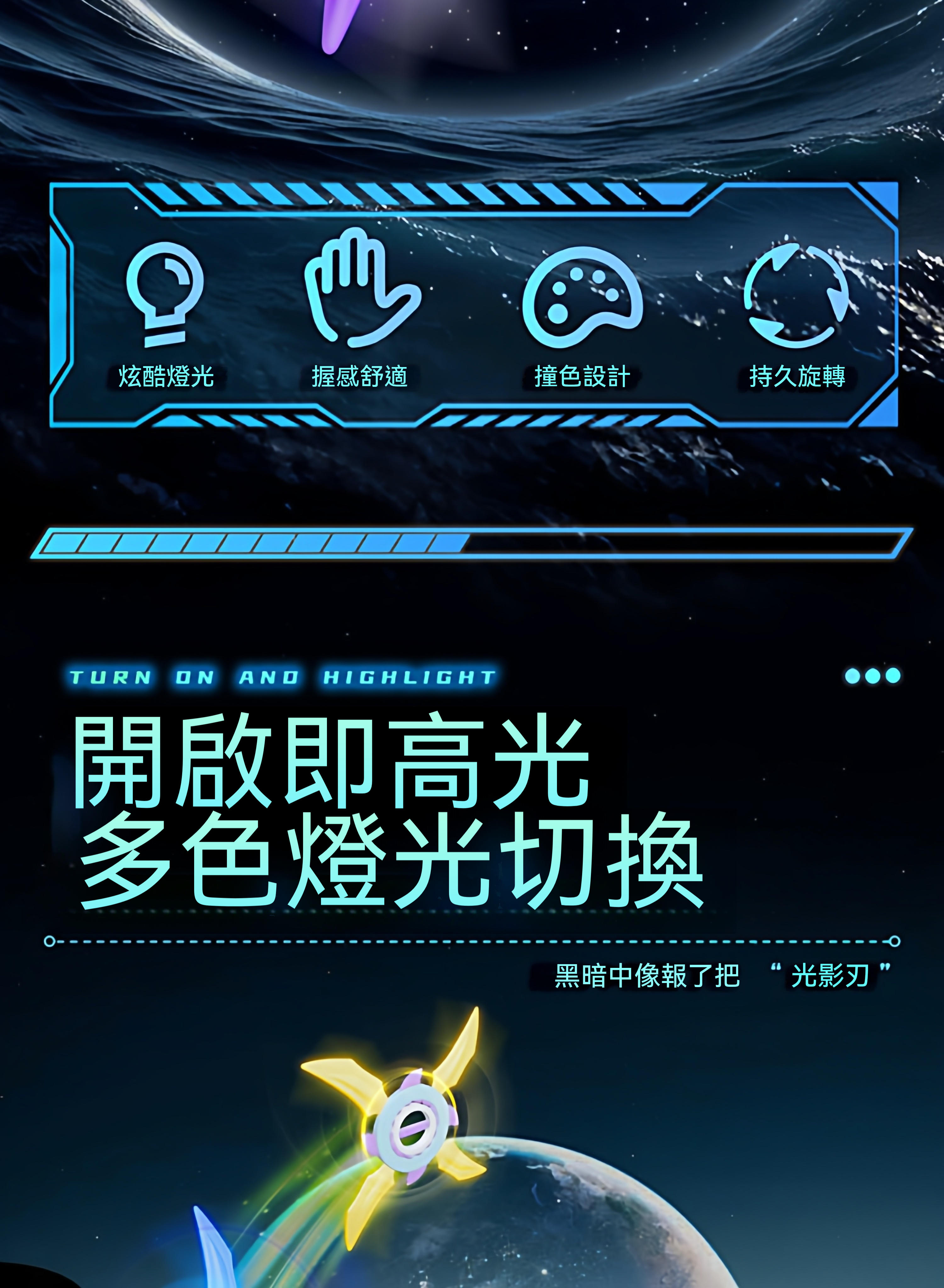 🔥未來戰士專屬武器🔥360°飛輪旋轉🌀閃爍LED夜光💡超酷音效⚔️真實戰鬥體驗💥高科技造型+安全材質💪孩子一秒變身星際勇者👦✨開啟炫光冒險之旅🌌💫